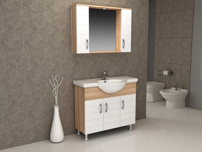 Gövde MDF Lam Kapak MDF Lam Aynalı Dolap Lavabo Seramik Lavabo UZAY 100